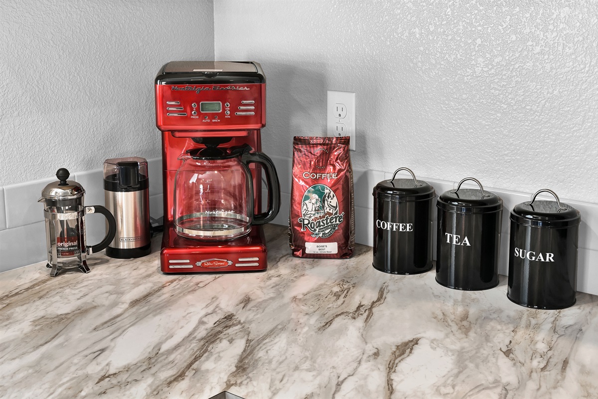 The Monochrome Home may look like an ordinary home from the outside but enter and find a world of color with a retro vibe! Each room has a color theme with painted accent murals throughout making it a fun and unique stay. The open concept kitchen, dining, and living room areas with 65" Smart TV is perfect for gathering with friends and family for sports or movies. The bonus room has a Smart TV, pullout couch with Queen size mattress, and Pacman arcade game. The fully fenced backyard and large grassy park with basketball court across the street from the home makes it perfect for kids or dogs. This home is in a quiet, family friendly neighborhood but located minutes away from St. Luke's Nampa Hospital, the Treasure Valley Marketplace with lots of shopping and restaurant options, and Edwards Cinemas.